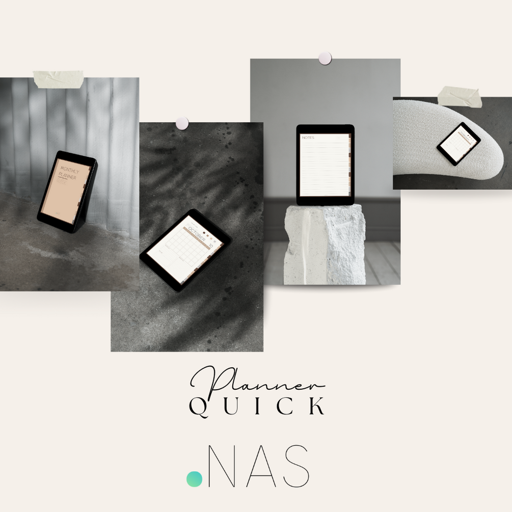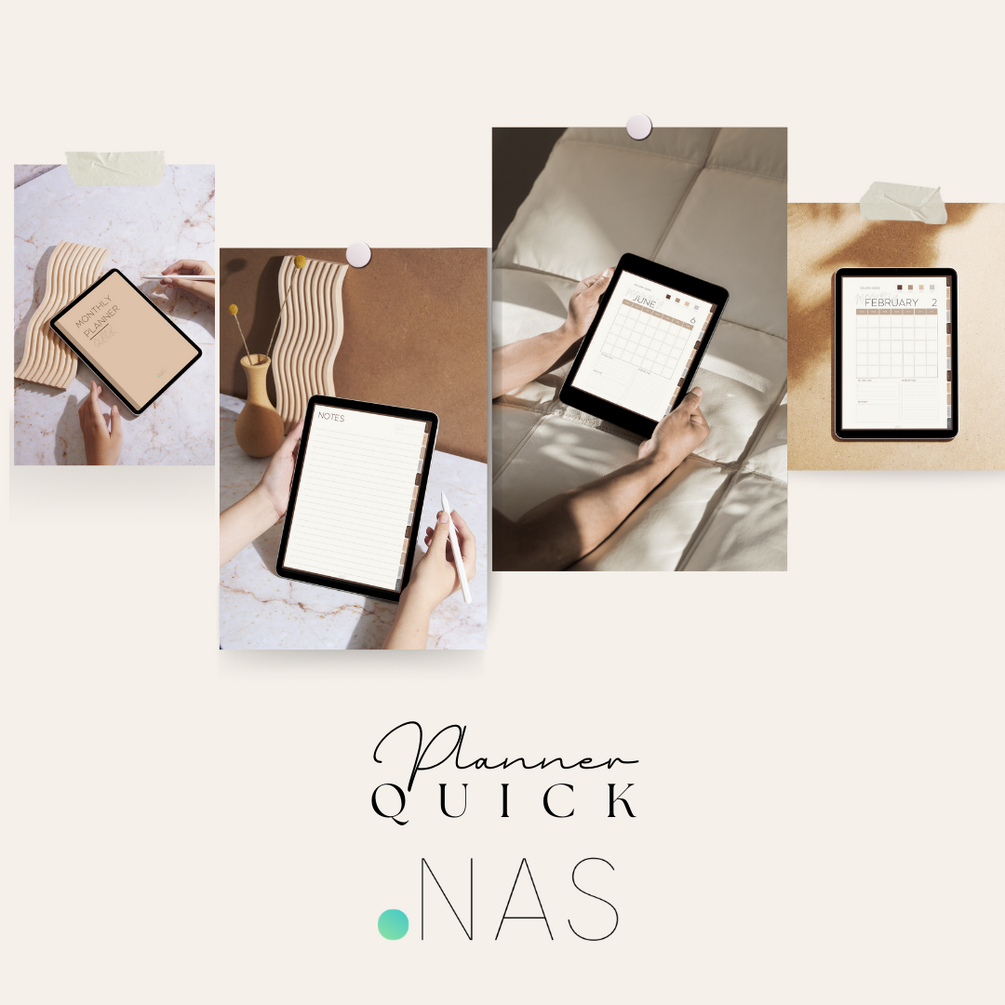 12 undated monthly spreads + goal tracking + task lists + notes page. Clean neutral design. Works with any PDF app on iPad. Instant download.