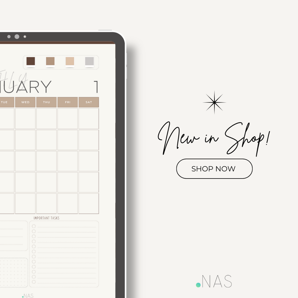 What's Inside: ✓ 12 Monthly Calendar Spreads (undated - use anytime) ✓ Top 3 Goals tracker per month ✓ Important Tasks section ✓ Brain Dump space for ideas ✓ Color-coding system included ✓ Clean neutral/earthy aesthetic (beige, tan, gray tones) ✓ Bonus: 1 Notes page